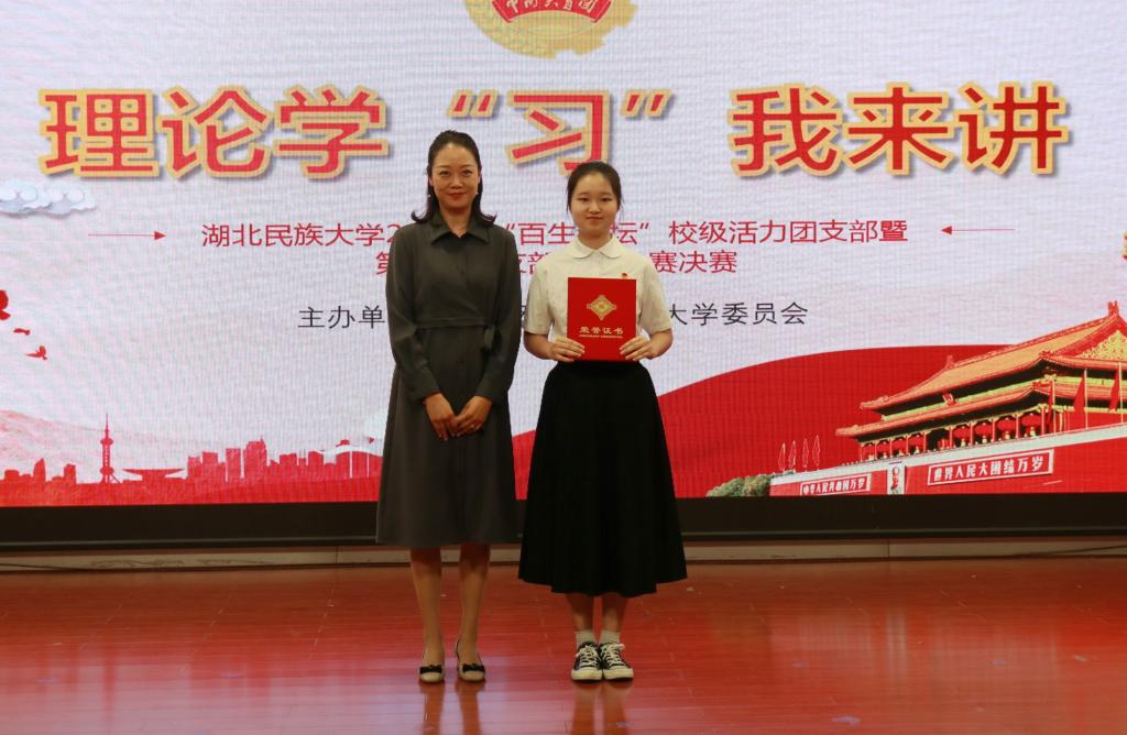 本网讯(记者 陆宇楠 陈雨捷 田忻)10月24日,文学与传媒学院在文传演播厅举办以“悠悠中华情,拳拳赤子心”为主题的爱国诗歌朗诵比赛决赛。文学与传媒学院老师徐定辉、郑泽红、范生范、毕曼应邀出席并担任评委。经过初赛的激烈角逐,共有十二组选手进入决赛。最终第九组文学与传媒学院学生刘清、吕鑫慧以96.625的高分摘得比赛桂冠。徐定辉为一等奖获得者颁奖(见习记者 陈雅欣/摄)第五组文学与传媒学院李紫阳、体育学院戴东明...