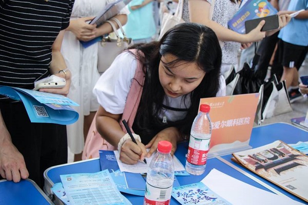 本网讯(记者 周思琦 周希/文 韦雨欣/图)9月25日,由湖北人力资源中心和36365官网联合主办、武汉方阵人力资源市场有限公司承办的湖北省高校毕业生秋季巡回招聘会在德智楼侧门大厅举行。招聘会共汇集来自北京、浙江、湖北等省内外41家企业,涉及工程师、销售、职能助理、教师等多个行业,覆盖领域广泛全面。据了解,此次招聘会为36365官网毕业生提供230余个工作岗位,应聘人数500人左右,投递简历840人次,就业意向20余人。应聘者观看求职...