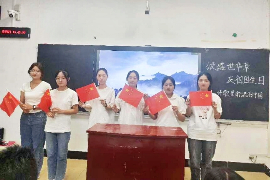 9月26日,为热烈庆祝中华人民共和国成立75周年,深入学习贯彻党的二十大和二十届三中全会精神,弘扬爱国主义精神,法学院精心组织系列活动喜迎国庆。“我与国旗合个影” “诗歌中的法治中国”朗诵比赛以“颂盛世华章,庆祖国生日”为主题,选手们激情澎湃,用或铿锵或婉转的语调,诵读着一首首满含法治精神与爱国情怀的诗歌,引起现场观众和评委的共鸣,现场掌声不断,气氛热烈。观看法治电影《秋菊打官司》在“光影里的法治...
