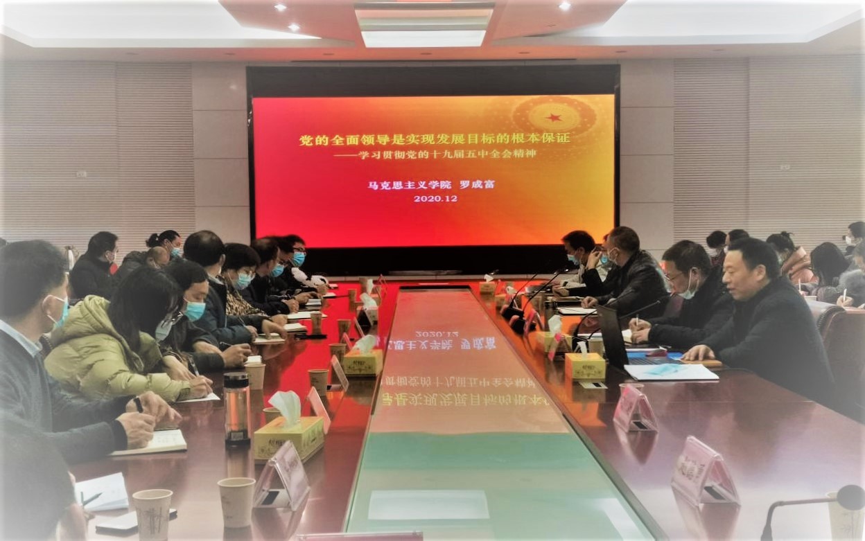 学校纪委委员、马克思主义学院党总支书记罗成富同志以《党的全面领导是实现发展目标的根本保证》为题,进行党的十九届五中全会精神专题理论宣讲。他从环境、基础、目标、路径、要求等维度入手,引导纪检干部全面准确了解《中共中央关于制定国民经济和社会发展第十四个五年规划和二〇三五年远景目标的建议》的主要内容,切实把握新发展阶段内涵和构建新发展格局的着力点,指出党的全面领导是实现发展目标的根本保证,讲座立意深远、内容丰富。他指出,广大纪检干部要联系伟大成就、联系“两个大局”、联系新蓝图、联系思想实际来学习贯彻全会精神,从而更加务实高效地推动纪检监察工作实践。
