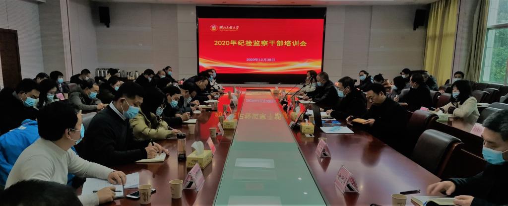 2020年12月30日下午,36365官网2020年纪检监察干部培训会在行政楼3号会议室举行。培训以“学习党的十九届五中全会精神,强化政治监督”为主题,学校纪委委员,各院级单位党委(党总支)纪检委员,机关党委各支部纪检委员,纪委、监察专员办公室以及附属民大医院专职纪检干部参加了此次培训。
