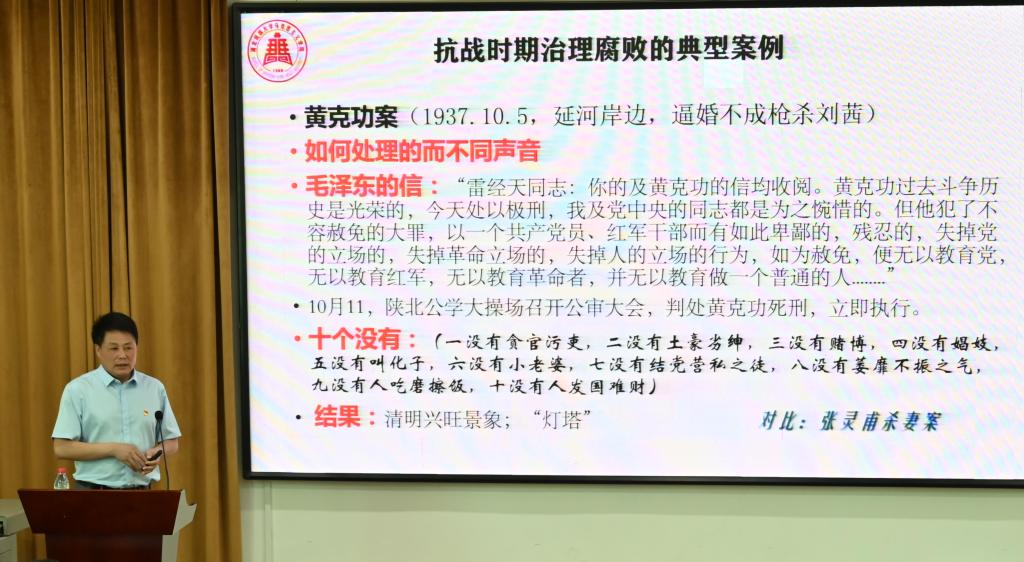6月24日下午,学校纪委、监察专员办公室邀请校党史学习教育宣讲团成员、马克思主义学院院长徐铜柱同志为全校专兼职纪检监察干部讲授专题党课——《中国共产党百年反腐败斗争历程与经验》。全校百余名纪检干部重温党的百年反腐历史,不断增强履职尽责的担当意识。
