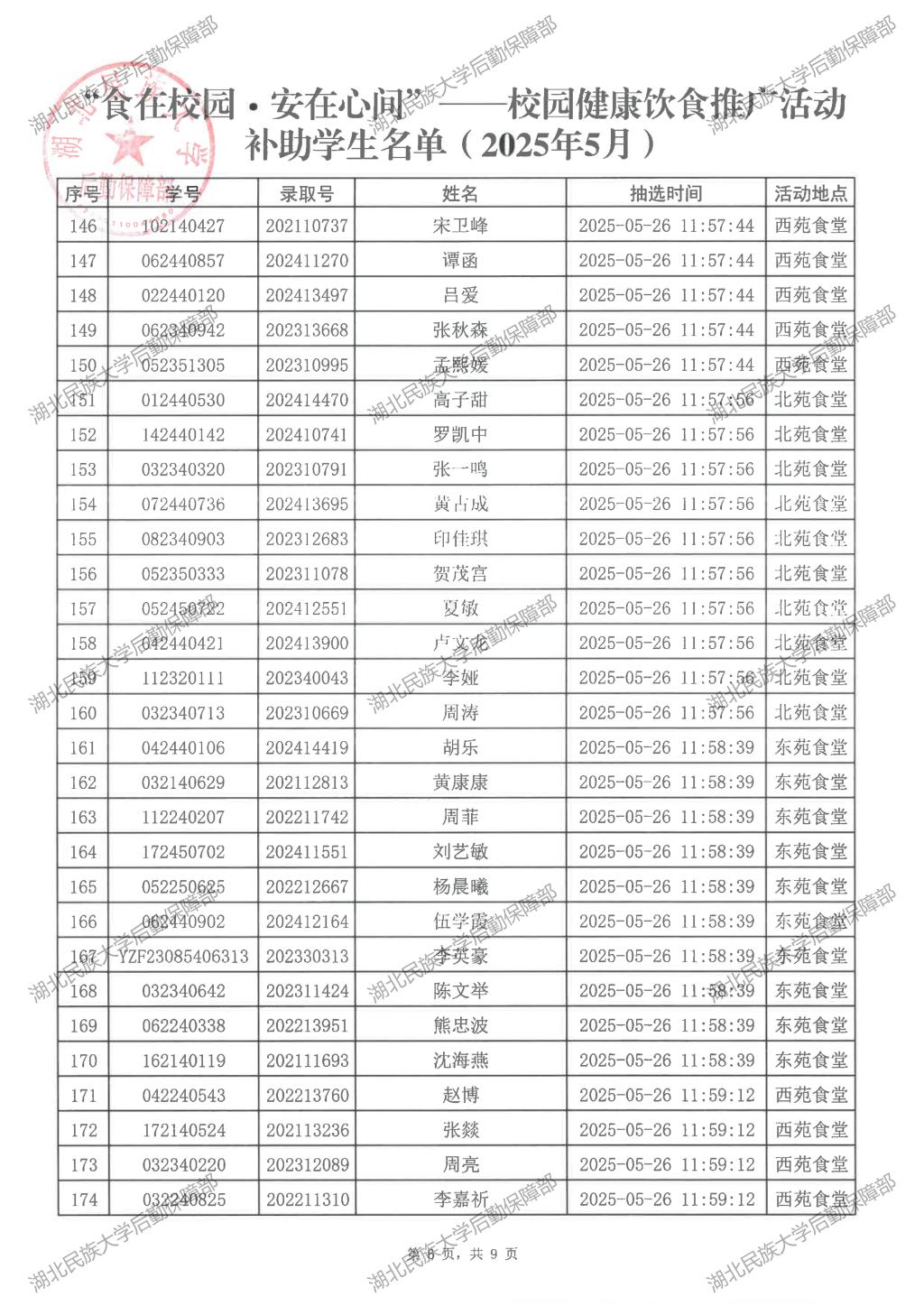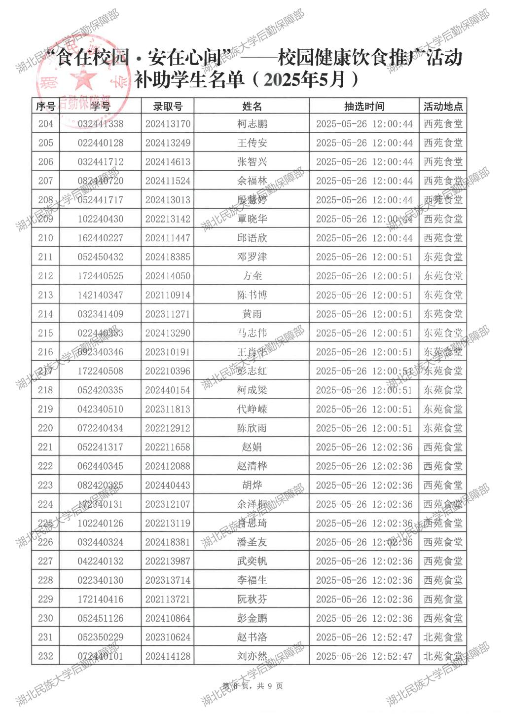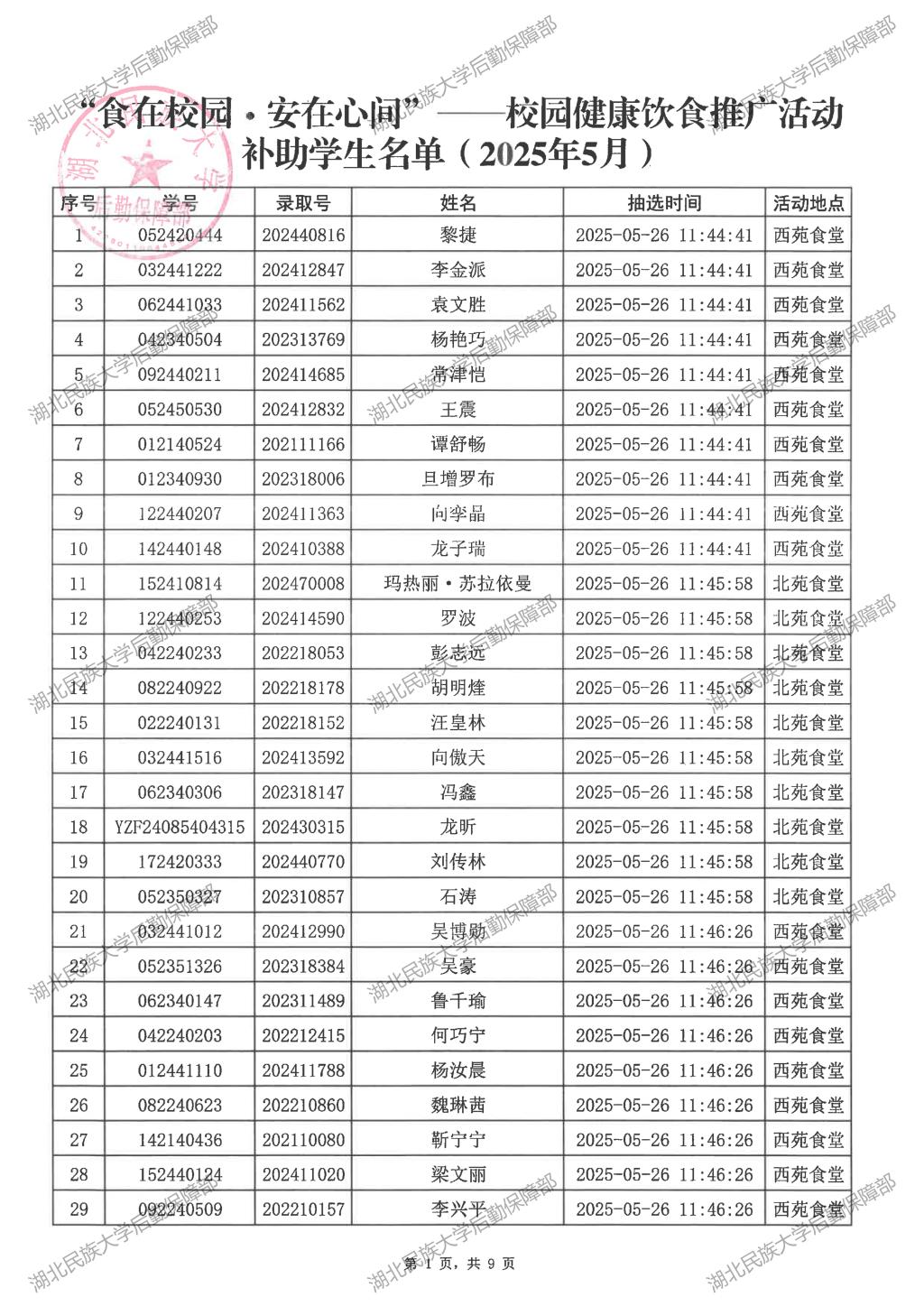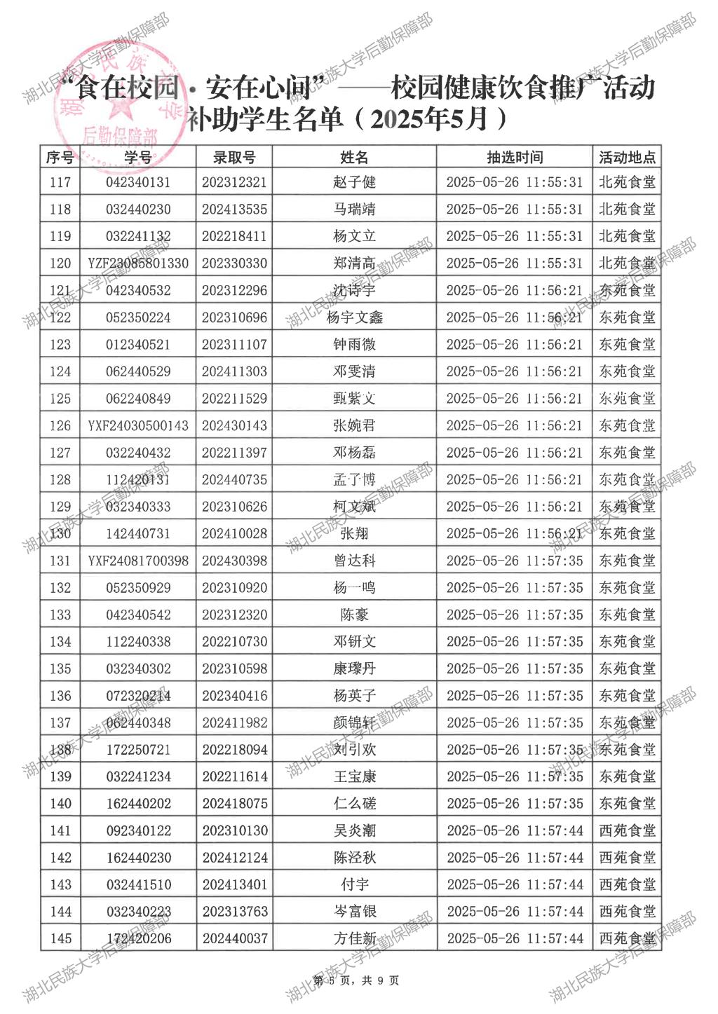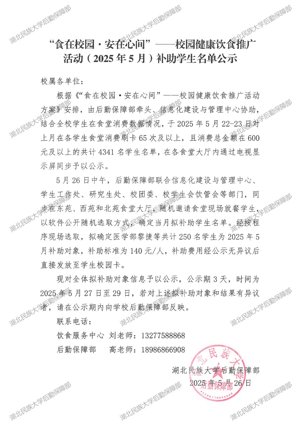 “食在校园·安在心间”——校园健康饮食推广活动(2025年5月)补助学生名单公示