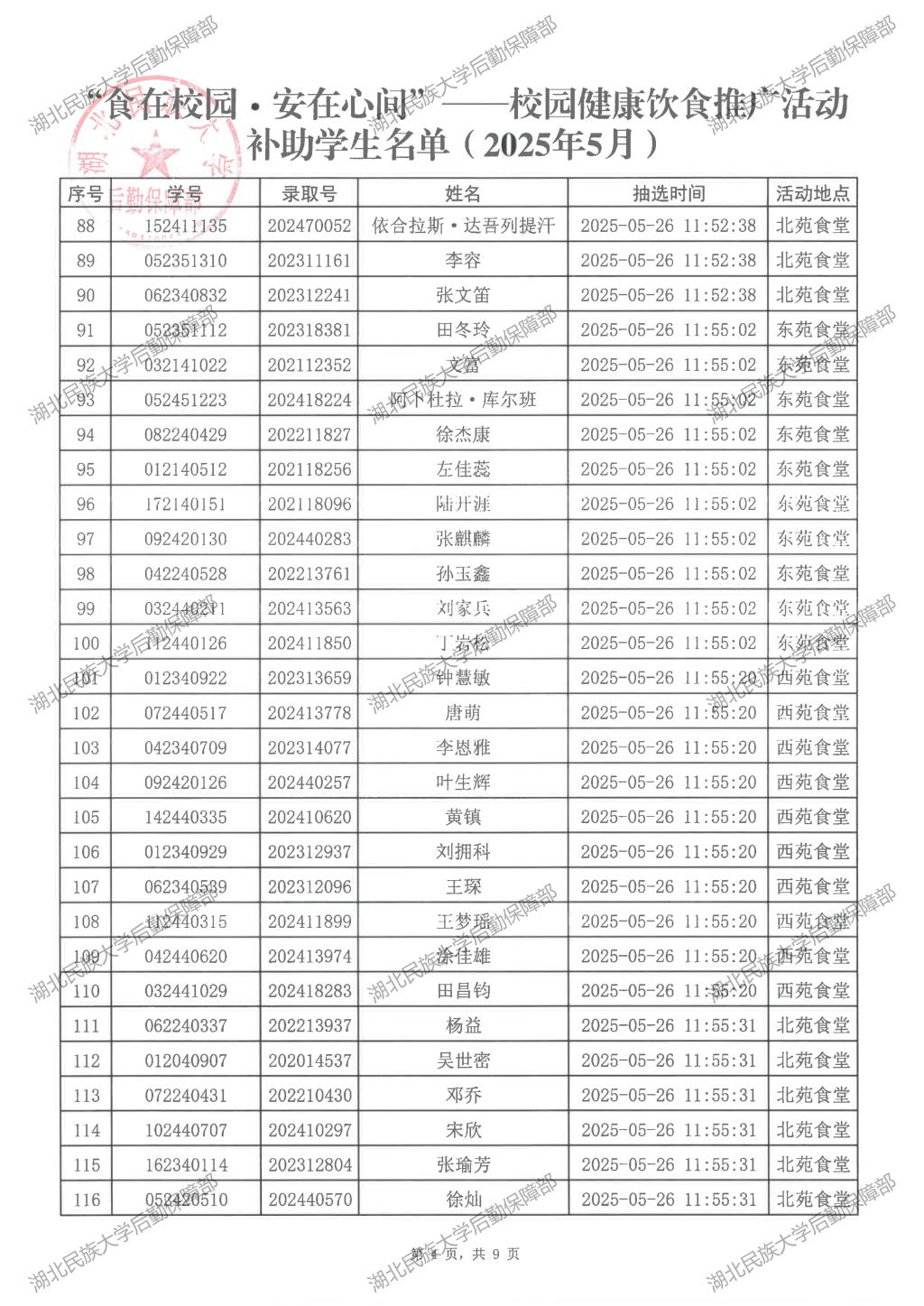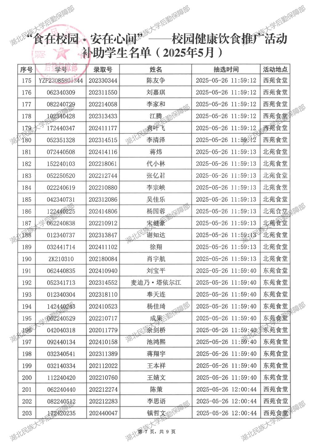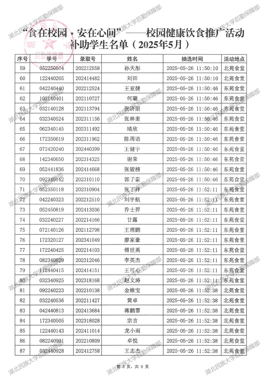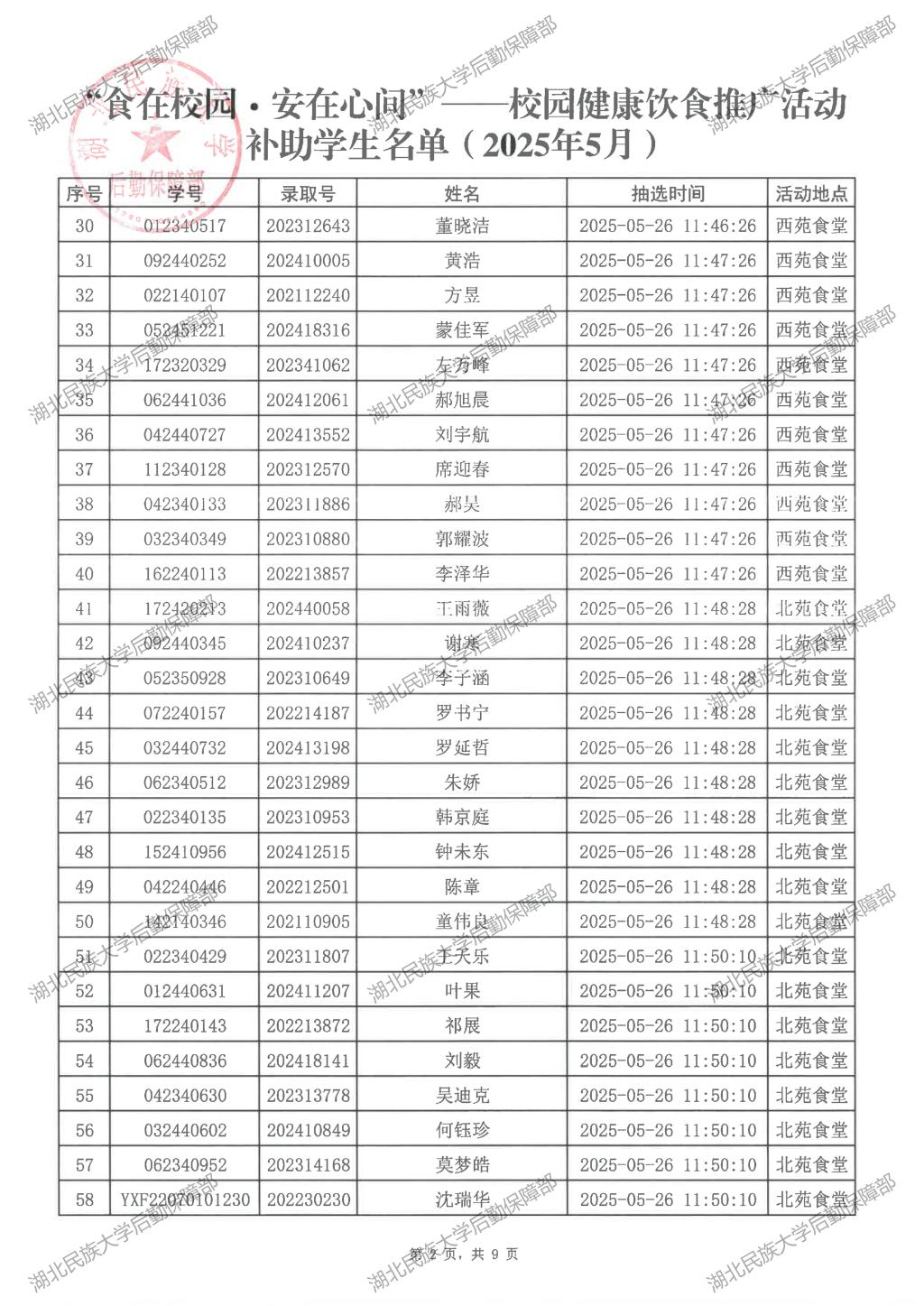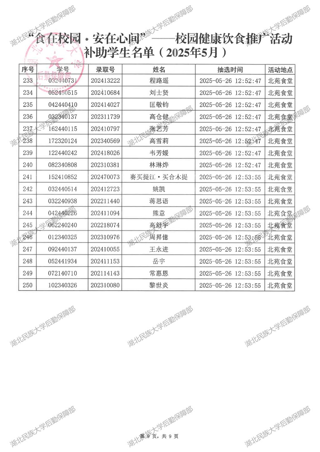 “食在校园·安在心间”——校园健康饮食推广活动(2025年5月)补助学生名单公示