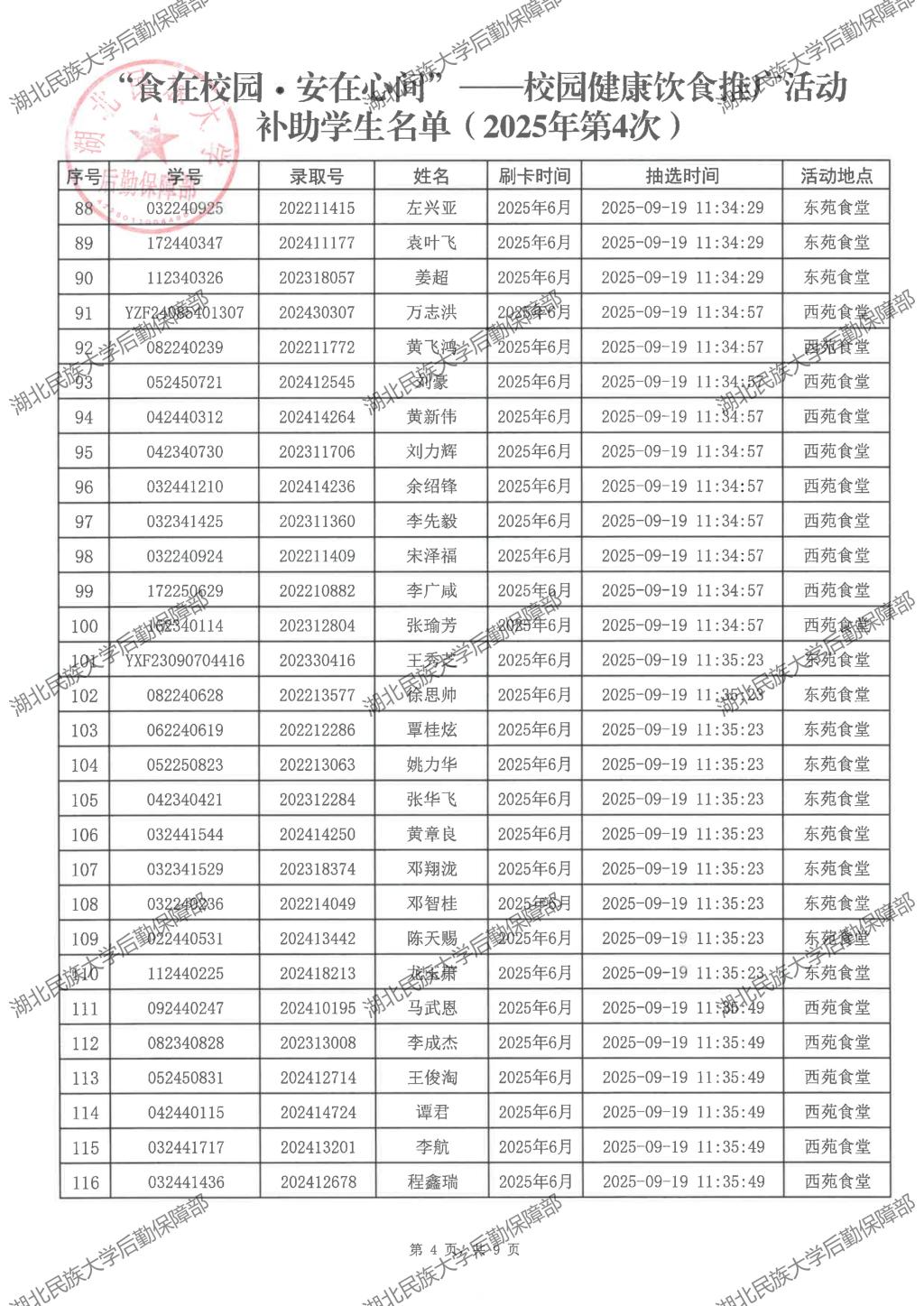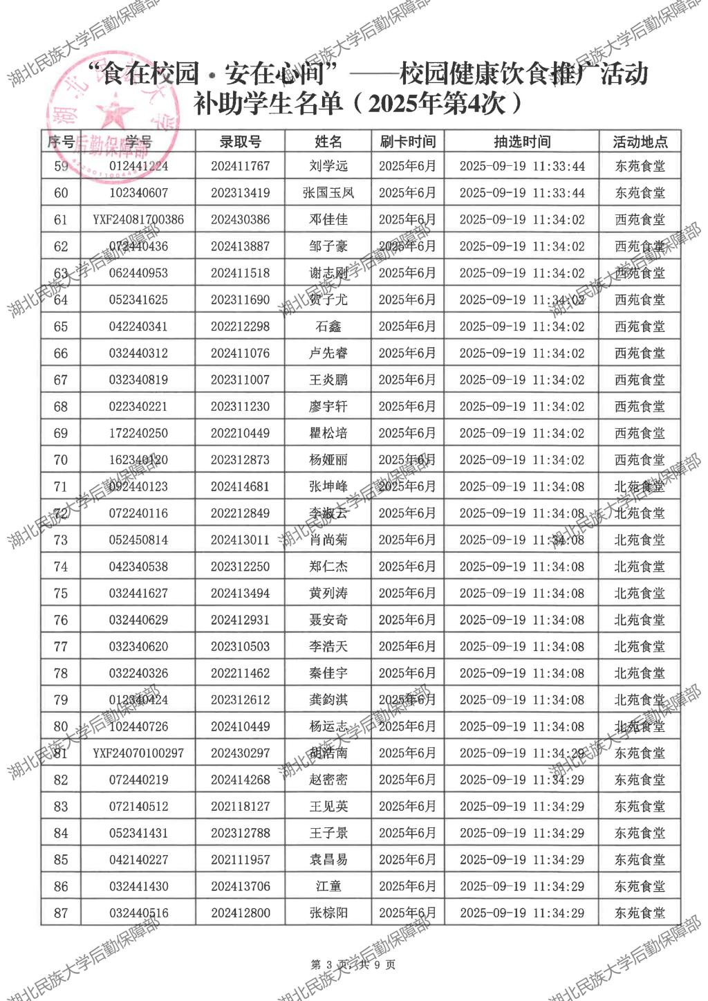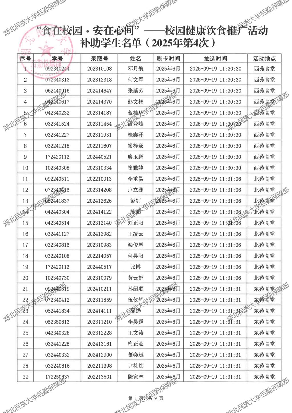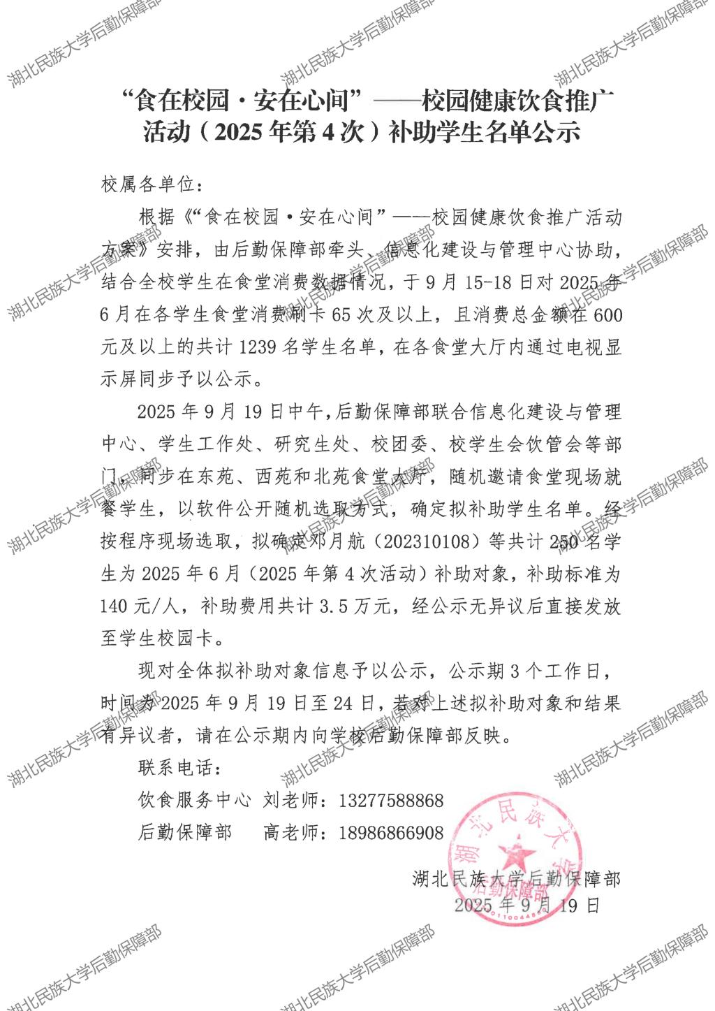 “食在校园·安在心间”——校园健康饮食推广活动(2025年第4次)补助学生名单公示