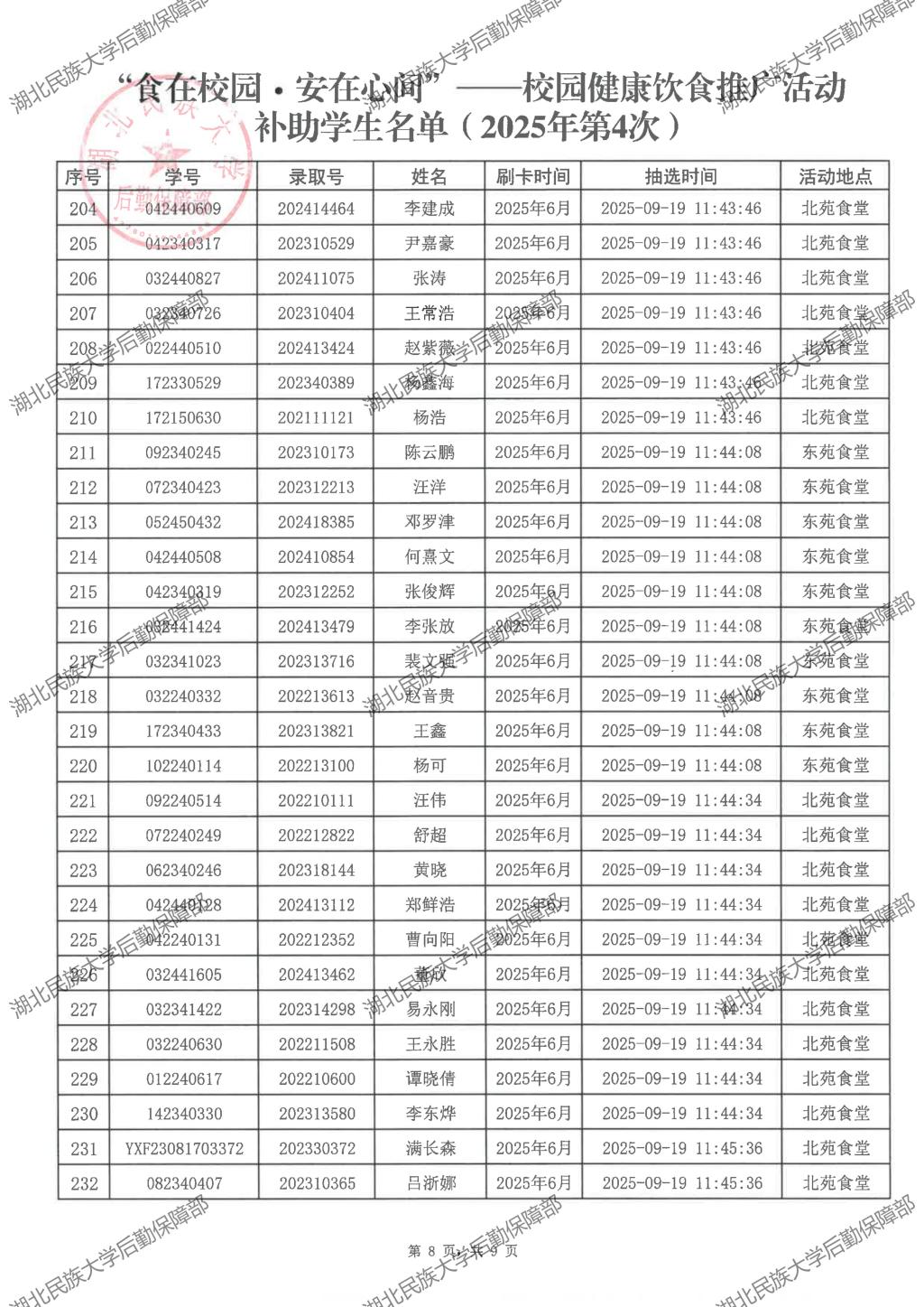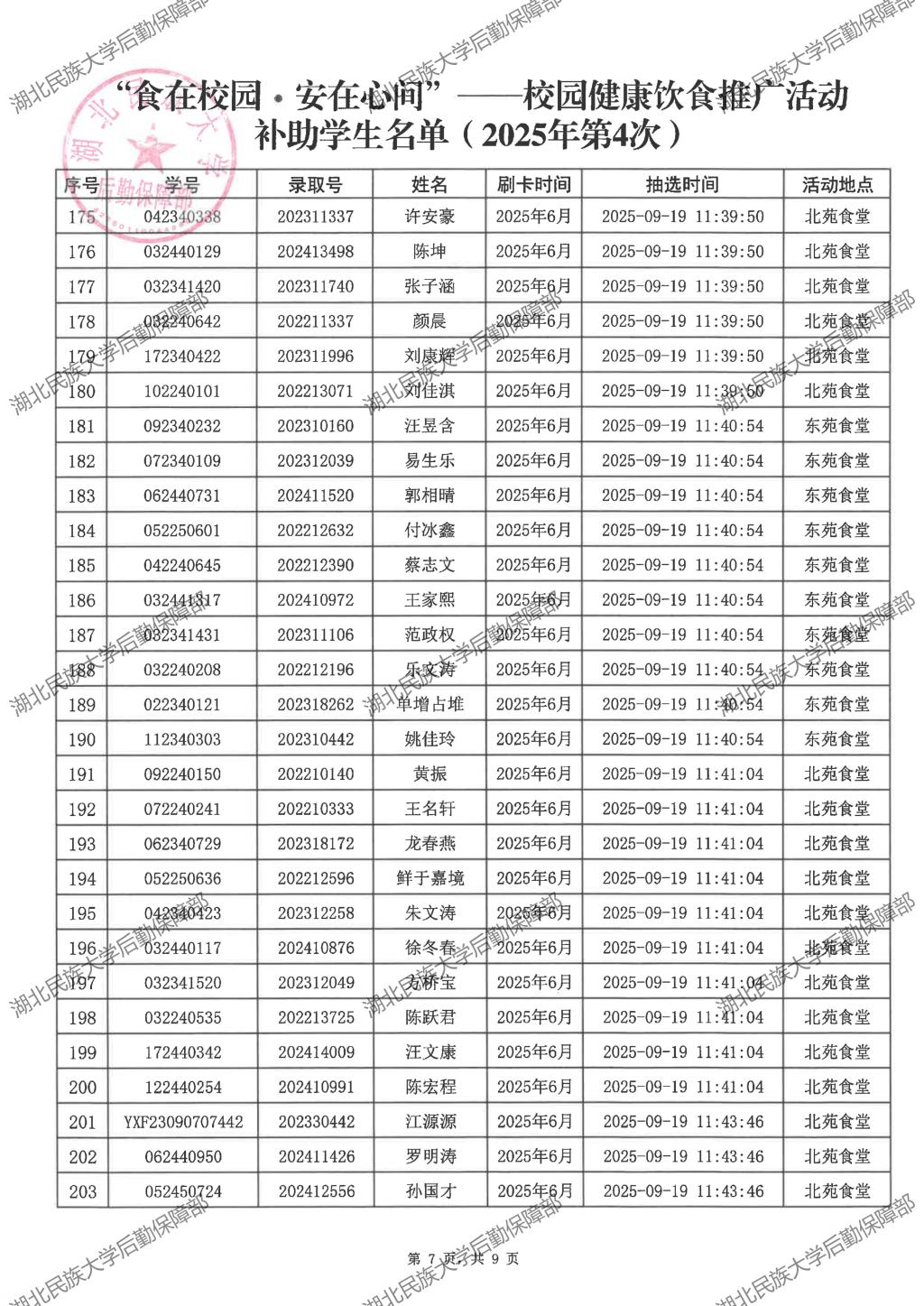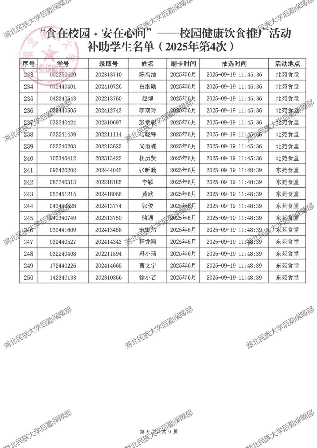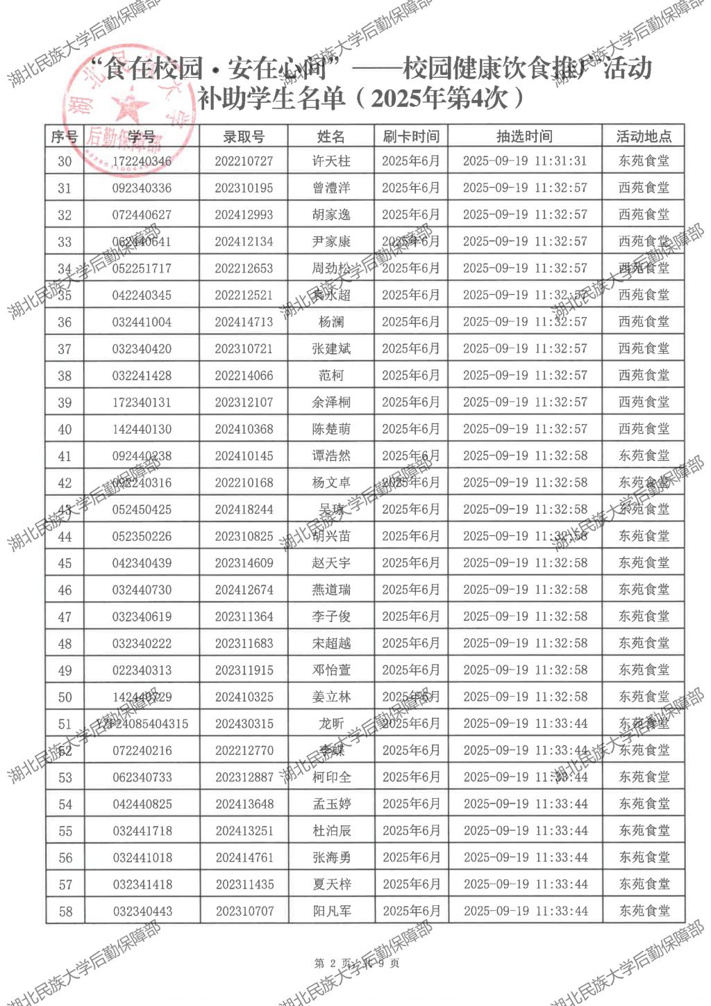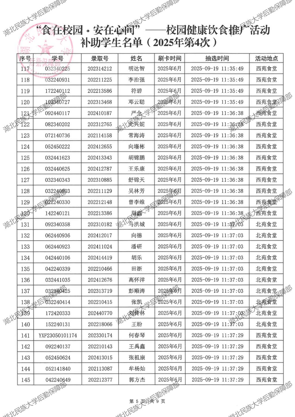 “食在校园·安在心间”——校园健康饮食推广活动(2025年第4次)补助学生名单公示