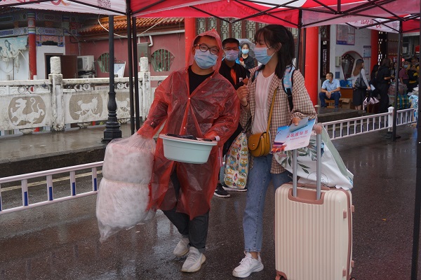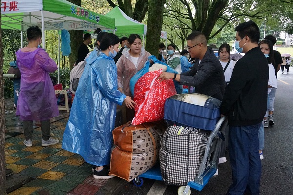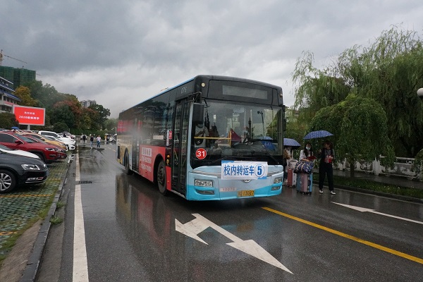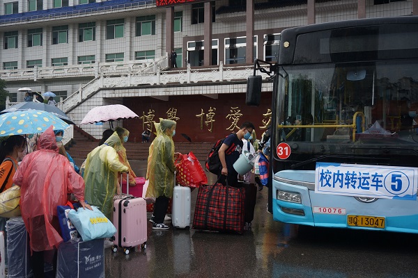 新生坐上直达宿舍的大巴车