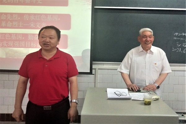本网讯(通讯员 郑萱)为庆祝中国共产党成立一百周年,我院开展学习党史系列党课。6月18日,老干处党员宋太伟教授在我院2204教室讲授以“传承红色基因,激发爱国热情”为主题的党史教育活动。我院党总支书记张刚担任主持人。