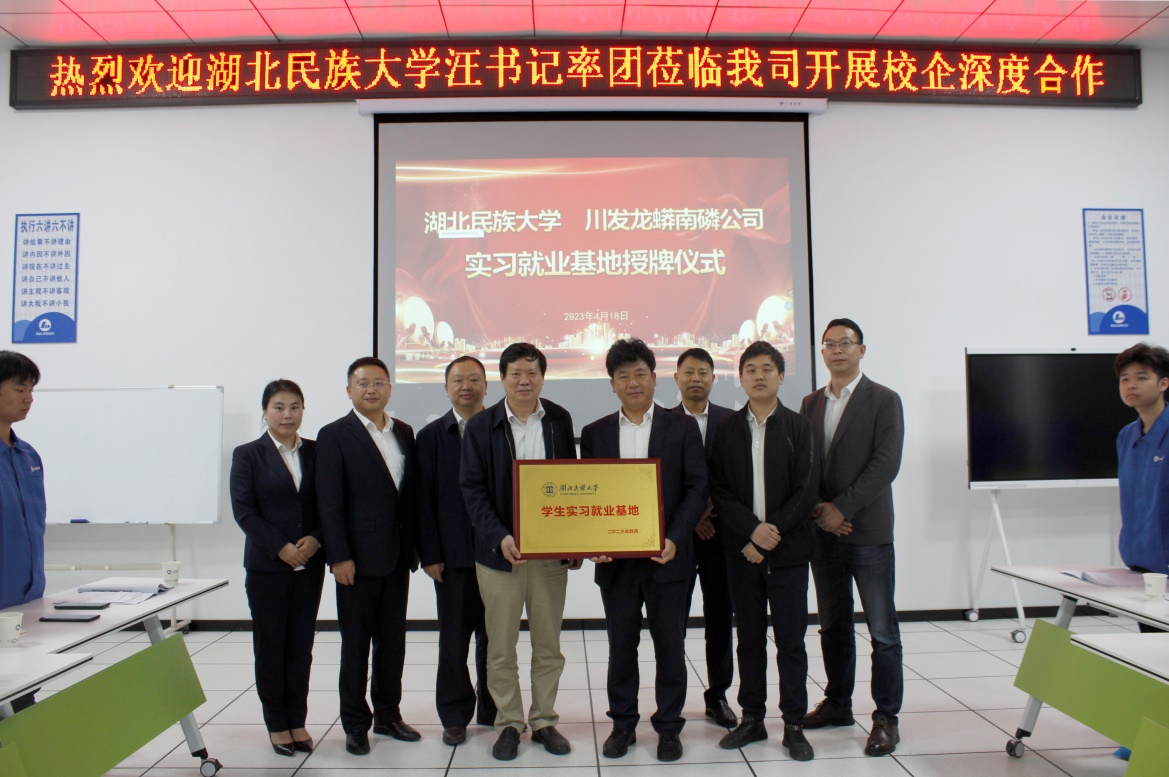 座谈会后,汪兴平为龙蟒磷制品有限责任公司副总经理朱洪成颁发客座教授聘书,并为学校“实习就业基地”授牌。