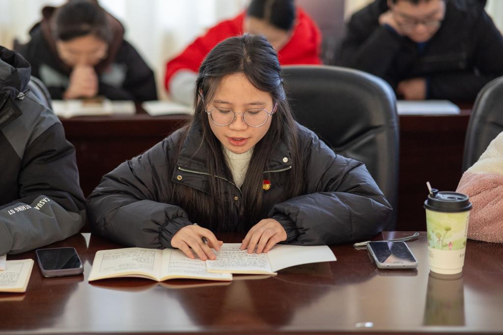本网讯(通讯员 卢炯/文 刘永康/图)12月25日,我院本科学生党支部在106会议室开展以“学史明理,做合格的接班人”为主题的十二月主题党日活动。我院党总支副书记张妮艳、本科学生党支部书记张艺馨、组织委员覃昕、宣传兼纪检委员彭召元及全体本科学生党员参加此次活动。