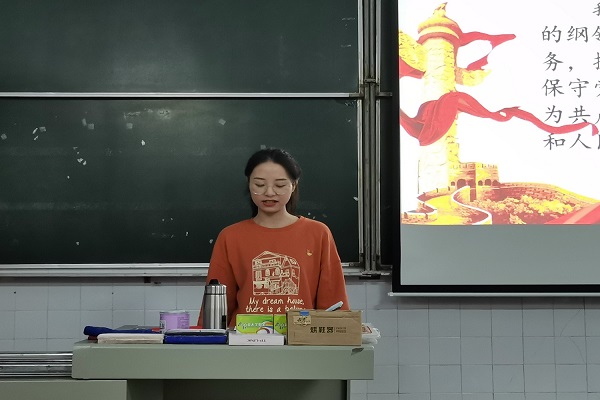 活动伊始,在组织党员交纳党费,重温入党誓词后,与会成员朗诵《党章》第二章第十六条,第十七条,第十八条等内容。接着,张艺馨领学“思政课是落实立德树人根本任务的关键课程”,她就开办思政课的重要意义及如何办好思政课展开解释;彭召元领学“习近平在全国抗击新冠肺炎疫情表彰大会上的讲话”及“习近平在第三次在中央新疆工作座谈会上的重要讲话”,并着重强调生命至上、举国同心、舍生忘死、尊重科学、命运与共的伟大抗疫精神。随后,与会成员围绕学习内容,根据学校开展的“学生思政、教师思政、课程思政、学科思政、环境思政”五个思政工作,支部成员结合自身情况,对思想政治工作进行交流讨论。