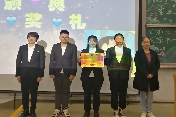 经过初复赛激烈角逐,化学专业和应用化学专业脱颖而出,进入决赛。正方化学班与反方应用化学班围绕“爱一行,干一行”“干一行,爱一行”展开辩论。唇枪舌战后,正方化学专业以78.82分的成绩夺得桂冠,正方四辩徐明珠获得本场比赛“最佳辩手”称号,反方三辩李辉获得“优秀辩手”称号。