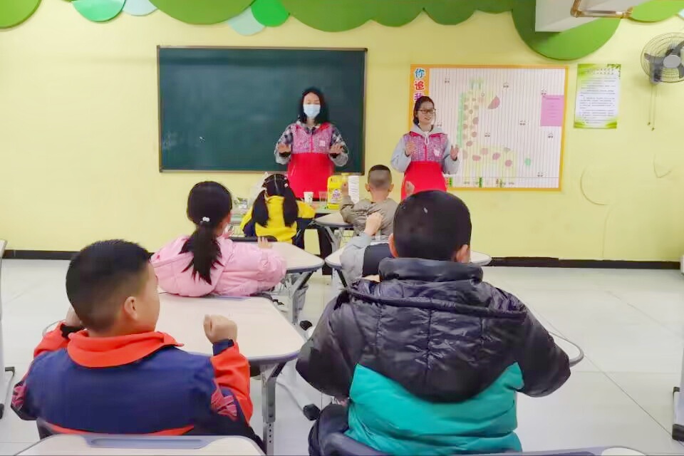 此次实验活动分为“彩虹赛跑”“神奇的牙签”“土电话,传话筒”三个环节。活动伊始,社长将参加的小朋友聚集在一起复习《猪猪侠》手势舞,之后开展科学实验活动。在“彩虹赛跑”这一环节,志愿者通过身边事例引出扩散的概念,并亲自给小朋友示范。稍后,在小朋友自己动手时,发现在水中卫生纸上的颜色可以扩散。接着,在“神器的牙签”中,志愿者提问:在不借助外力的情况下如何让牙签立起来。小朋友们踊跃参加并积极发言,同时志愿者给小朋友科普水的张力和浮力,让他们了解实验背后的科学小知识。最后,通过“土电话,传话筒”来给小朋友们科普声音是由振动产生的,也需要通过介质传播,并且赠送每个小朋友们“土电话”,让他们回家后将成果展现给父母并讲述其中的原理。