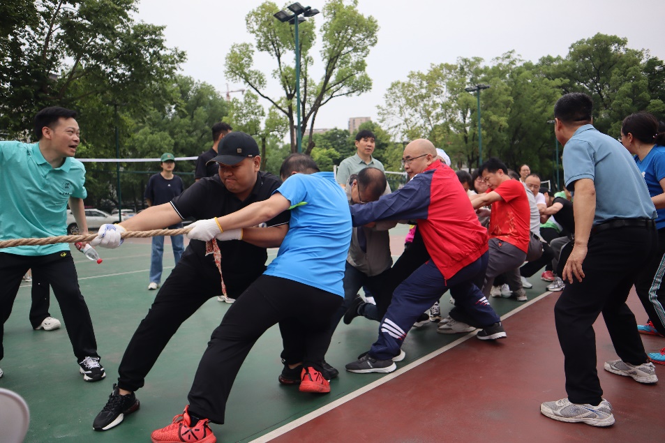 本次教职工运动会共设拔河、陆地龙舟、跳绳接龙、动感颠球四个项目。活动现场气氛热烈,老师们斗志昂扬,观众热情高涨,加油声和打鼓声此起彼伏。