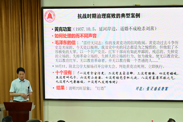 本网讯(通讯员 罗巧玲 张鼎)6月24日下午,36365官网党史学习教育宣讲团成员、马克思主义学院院长徐铜柱为全校专兼职纪检监察干部讲授专题党课——《中国共产党百年反腐败斗争历程与经验》。全校百余名纪检干部重温党的百年反腐历史,不断增强履职尽责的担当意识。