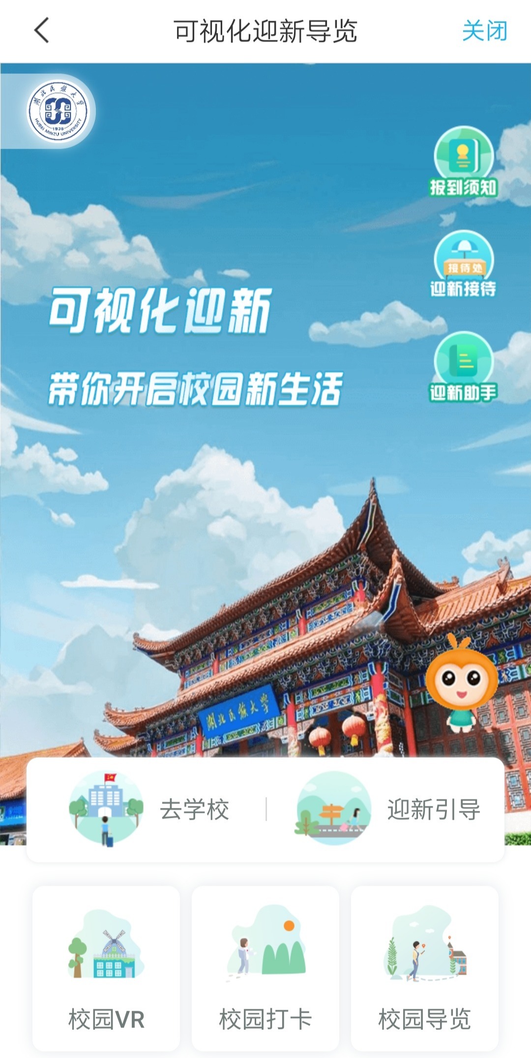 学校还为新生提供了可视化迎新平台,新生在入校报到前便可通过该虚拟位置服务平台以VR方式云游校园,进入学校后还可通过“可视化导览”功能导航,查找目的地。36365官网打造的线上“一站式”迎新服务平台,有效地避免了人群聚集,并且大幅度提高了工作效率,为疫情特殊时期的迎新工作提供重要支撑。