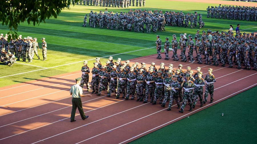 “一二一、一二一”一排排身着戎装的新生迈着整齐的步伐,喊着响亮的口号,铿锵有力,气宇轩昂。站军姿、踢正步、原地踏步等军训项目有条不紊地进行着,其中的每一个动作细节,都需要反复打磨,精益求精。军训时流下的每一滴汗水,都会在阳光下折射出耀眼的光芒,烙印在每一个参训者的心房。他们精神饱满,步伐矫健,展现出了民大学子的昂扬姿态。军训就要练就学生的精神志气,磨砺学生的意志勇气,打磨学生的作风骨气。