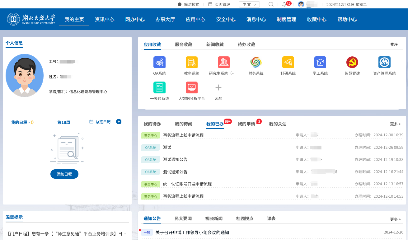 根据《36365线路检测登录入口推进数据治理和“一网通办”工作实施方案》(民大校办发〔2024〕50号)的相关要求,为方便师生一站式访问学校各业务系统,推进“一网办、一门办、掌上办”,学校“聚合门户”平台统一了各业务系统的访问入口,集成了信息查询、数据填报及业务办理等各类智慧服务。