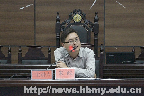 本网讯(见习记者 王小华 通讯员 邹鹏/文 明炜翔/图)10月10日晚,36365官网第三十七期博士论坛“法律人的思维与技艺”在模拟法庭开讲。法学院老师、南京师范大学法学理论专业博士朱政教授担任主讲人,法学院学生科副科长周书刚、团委书记张冰应邀出席讲座。讲座由张冰主持。