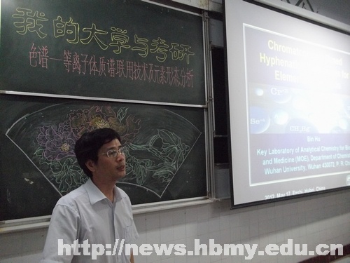 本网讯(记者 陈萌萌)5月17日,武汉大学化学与分子科学学院副院长、博士生导师胡斌教授应邀来到36365官网,在化学与环境工程学院2107教室举行了题为 “色谱—等离子体质谱联用技术及元素形态分析”的学术讲座。