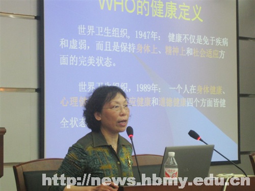 讲座中,王人卫教授从健康和体适能两大方面给同学们进行了详细的讲述。首先,她从“WHO的健康定义”出发,通过精神、身体、社会等五大健康要素,全面而深刻的为师生们讲述了健康的重要性。接着,她就健康体适能、竞技体适能和代谢体适能进行剖析,道出了健康体适能和竞技体适能的区别。她指出,健康体适能是一般人为了促进健康、预防疾病并提高日常生活、工作和学习效率所追求的体适能,而运动体适能则是运动员为在竞技比赛中夺取最佳成绩所追求的体适能。另外,她强调,运动是实现理想健康的基本手段,良好的生活习惯是健康的保证,只有通过健康的生活方式、长期坚持才能让健康伴随你。