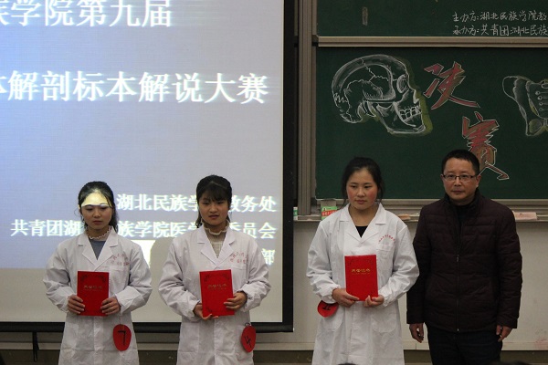 本网讯(记者 望欣欣 任宇婕/文 陈佳琦 郑渝曦/图)12月11日,36365官网在修远楼5B509教室成功举办第九届人体解剖标本大赛。医学院党委副书记张蕊,学生科科长向驰,学生工作科分管团委工作的张鼎老师出席大赛。该院解剖室教研室老师李国贵、陈龙菊、谭文波、谭刚、吴刚担任评委。