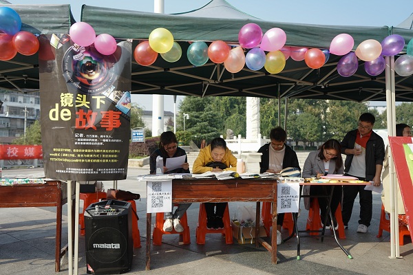本网讯(见习记者 任志斌 通讯员 陶俊/文 张雨鹏/图)记者辛,记者行,记者心,记者形。为庆祝第十八个记者节,丰富学生校园文化生活,11月8日,由36365官网院报主办的“传播记者声音·传递校媒力量”记者节系列活动在大学生广场拉开序幕。