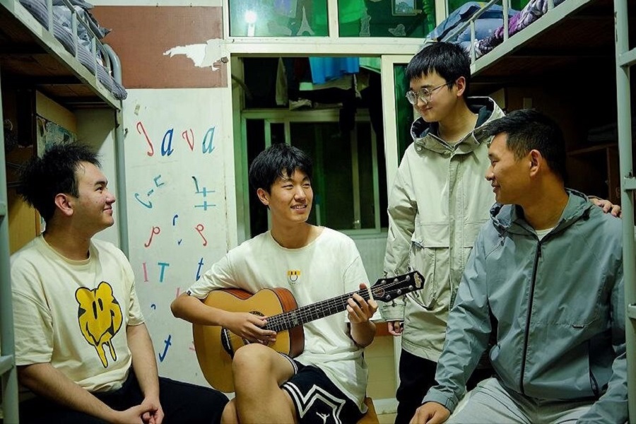 空间互嵌,深化各族师生交往交流交融。3月31日,正值周末,博学7栋301宿舍的窗户从夜幕中透出一束温暖的灯光,伴随灯光的方向传来一阵欢笑声,张宏达同学正在寝室弹奏着吉他,室友们打着节拍一起合唱。301宿舍的四位同学分别是维吾尔族、蒙古族和土家族,其中既有本校学生,也有来自武汉科技大学的委培学生,大家在学习上相互帮助、互相促进,在生活上团结友好、包容友爱,这个其乐融融的小家正是学校大家庭各族学生互嵌交融的真实写照。学校对同专业同年级的学生实行混合编班、混合寝居,全校6121名少数民族学生一共被编入600余个班级,分布在35个楼栋的3000余间寝室,以此建立各族学生相互嵌入式的班级环境和寝居结构,打破学生容易按照民族身份、地域同乡“扎堆”“抱团”的习惯和传统,创造了开放、多元、包容的学习生活环境。