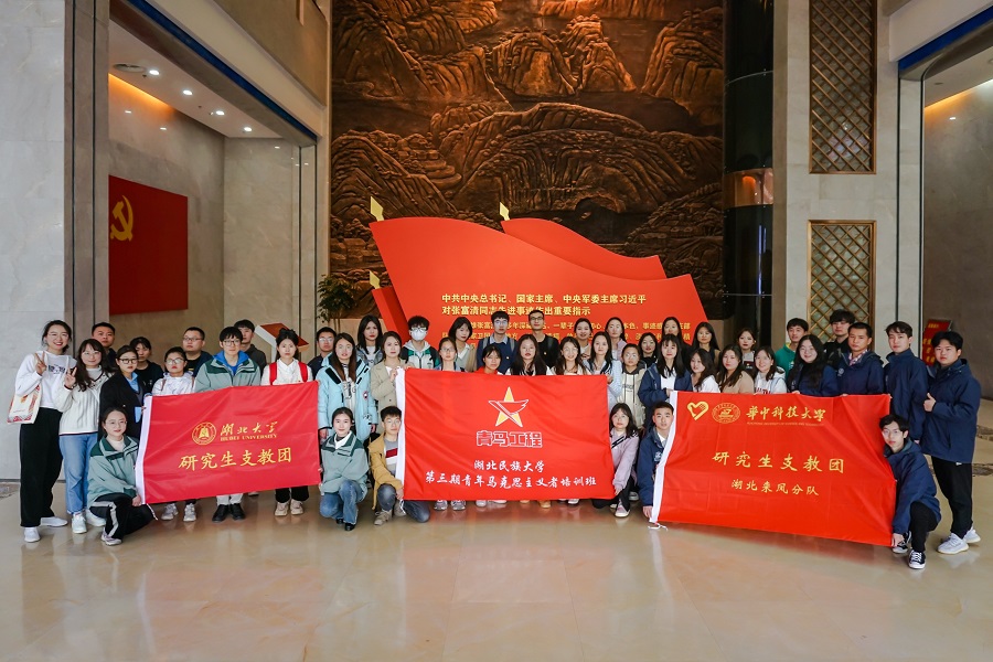 以生为本,突出学生主体地位,创新思想政治引领方式。4月27日,学校“领导之约·读书会”活动在桂花园校区倍阅书店举行,来自学校青马班的学员代表邓紫琰、赵倩和大家分享了《乡土中国》《习近平的七年知青岁月》,他们以自身读书的经历告诉大家要用现在的好时光多读书、读好书,要在书本中汲取养分。3月30日,学校第三期青年马克思主义者培训班全体学员赴恩施州来凤县开展主题研学活动,从民族博物馆到现代农业示范基地,从革命英雄故事到乡村振兴实践,学生深受触动。3月27日,来自各学院的近800名团校学员,在大学生广场集中观看了学校原创民族歌舞剧《老兵》,这是学校首次运用了话剧团课的授课模式,引领全体学员在观赏过程中领略红色经典,深入学习老兵精神,传承红色基因,厚植爱国情怀。