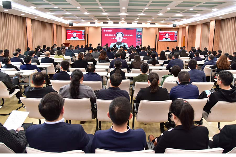 湖北省教育厅高等教育处处长崔锋在讲话中指出,要进一步提高政治站位,以接受评估为契机,深入学习习近平总书记关于高等教育的重要论述,全面贯彻党的教育方针,不断深化高等教育综合改革,培养更多拔尖创新人才,为推进中国式现代化湖北实践做出新的更大贡献。深刻把握评估分类发展基本导向,围绕应用型高校的办学定位,在教学、科研、社会服务、文化传承与创新等各方面推进内涵发展、创新发展、特色发展,努力在自己的赛道上争创一流。进一步抓好整改提升,严格执行教育部“十不准”评估纪律要求,认真研究采纳专家组意见建议,聚焦问题,对标找差,补齐短板,即知即改、立行立改。进一步提升本科教育教学质量,真正达到以评促建、以评促改、以评促管、以评促强的目的,为今年全省推进审核评估工作发挥好引领示范作用。