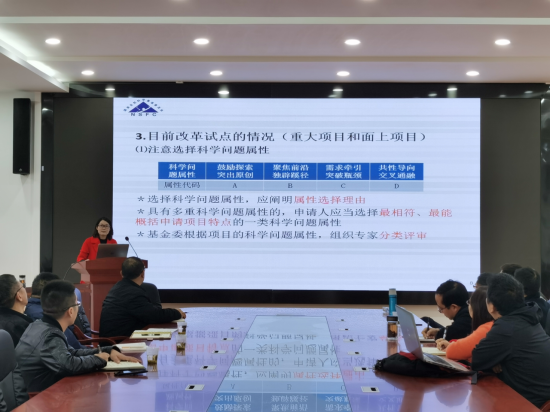 会上,冯小霞老师就参加2020年管理科学部地区基金交流会作情况汇报,她分别从基金委管理科学部工作人员基本介绍、基金改革趋势、地区基金资助情况以及各处资助重点做分享。她指出要把握“鼓励探索,突出原则;聚焦前沿,独辟蹊径;需求牵引,突破瓶颈;共性导向,交叉通融”的总原则,同时强调了科研项目申报科学性、创造性及可行性方面情况。最后,她结合近5年G01-G04地区基金的申请情况和资助形式分享了格局逐渐趋于平衡、竞争相对更激烈的现状,并说明要进一步加强依托单位管理及加大对地区科学基金项目投入力度。