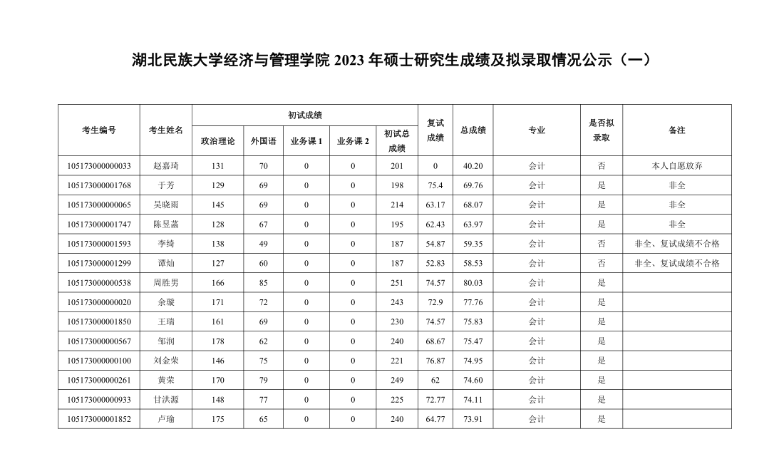 36365线路检测登录入口经济与管理学院 2023 年硕士研究生成绩及拟录取情况公示(一)