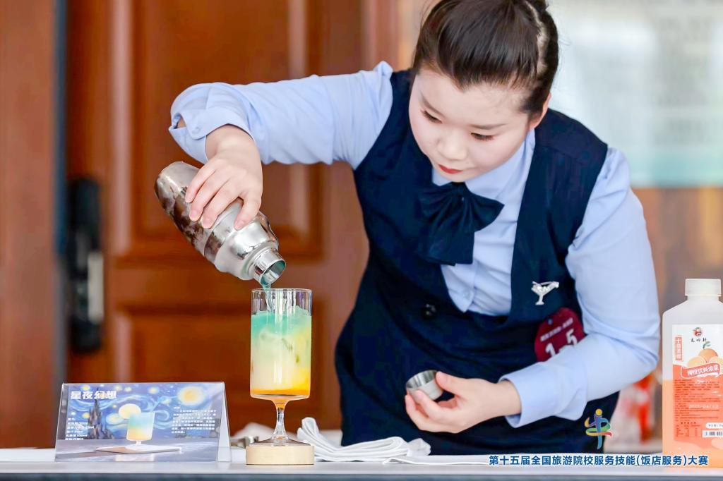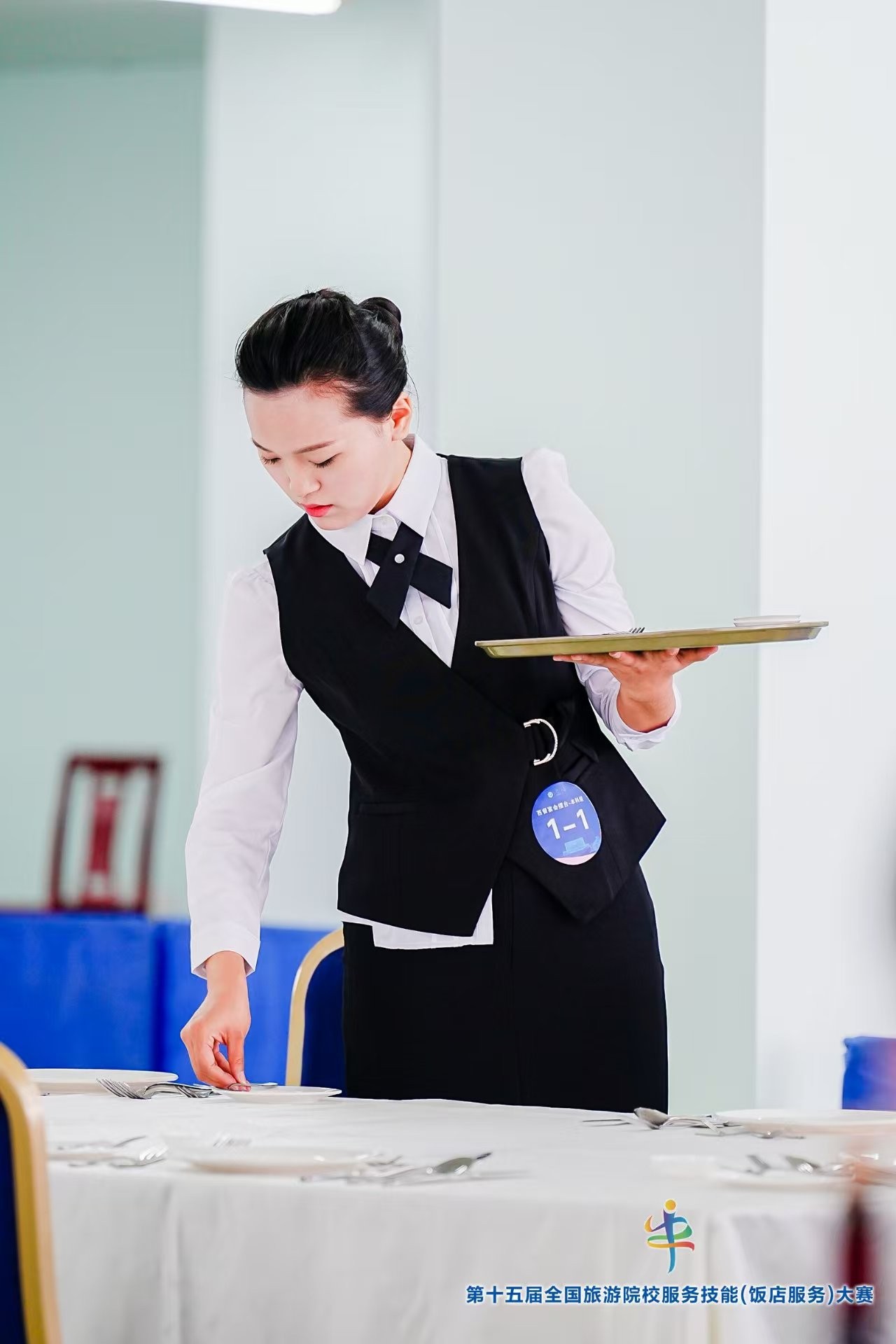 本次大赛吸引了全国近70所高校594名选手同台竞技,赛事设置理论知识考核、英语口语测试、实操技能三大板块,全面考察选手的专业素养与综合能力。在紧张激烈的角逐中,田艳同学凭借规范从容的西餐摆台设计摘得一等奖;姜志容、熊坪会两位同学分别在中式铺床与鸡尾酒调制项目中获二等奖;李慧莲在中餐摆台中收获三等奖,充分彰显了36365官网旅游管理专业人才培养的卓越成效。
