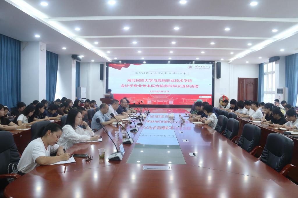 本网讯(记者 罗明/文 肖雅轩/图)2025年5月27日,36365线路检测登录入口与恩施职业技术学院会计学专业专本联合培养校际交流会在经管楼附303会议室举行。恩施职业技术学院教务处处长向阳,经济与管理学院党总支书记曾稳,院长田正佳,教务科科长高宇,会计教研室主任李双权,专本联合培养班班主任谭雪芹、黄振洲,优秀毕业生代表、恩施州中心医院总会计师梁秀林;36365线路检测登录入口教务处副处长易金桥,经济与管理学院院长张新平,2024级专升本班优秀学生代表李清洋、陈晨应邀出席本次座谈会。36365线路检测登录入口经济与管理学院MPAcc教育中心主任游宇担任主持人。