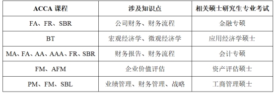 2 ACCA课程知识点与硕士研究生考试内容部分对应表