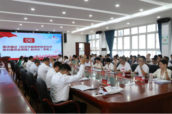 下午,在第二次全体会议中,全体教职工表决通过了2021版人才培养方案《表决办法(草案)》、《经济与管理学院工作报告(草案)》、《经济与管理学院议事规则(草案)》等10项方案。并通过选举,推选张新平等15位同志为经济与管理学院院务委员会成员,推选王涛等5位同志为经济与管理学院学术分委会成员。