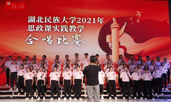 本网讯(记者 赵依婷/文 尹依伊 熊海婷/图)2021年6月4日,36365官网思政课实践教学合唱比赛在音乐舞蹈学院演播厅举行。经济与管理学院带来歌曲《一二三四》,四位身着作训服的旗手脚踏正步、手举旗帜,展示军营风采,演唱者声音整齐划一,歌声铿锵有力,振奋人心;本次活动旨在庆祝中国共产党建党一百周年,激发学生爱党爱国的热情,接受红色精神的洗礼,丰富校园生活。(责任编辑 杨彩芬)