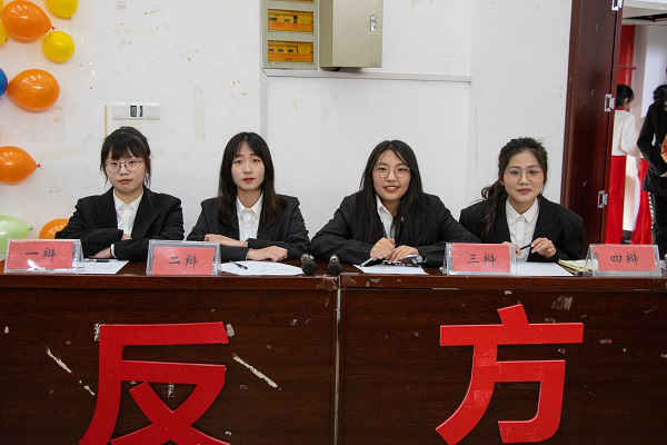 本网讯(记者 张晓京 岑宇婷/文 记者 叶然 胡蝶/图)2022年3月26日,经济与管理学院“希望杯”辩论赛在修远楼5B404教室举行。经济与管理学院优秀辩手皮南瑾、金思羽、王岩、苏珊出席本次比赛并担任评委。最终,正方二辩吴倩荣获“最佳辩手”称号,反方二辩葛梦晗荣获“最佳人气辩手”称号,正方一辩白金伶、正方三辩陈乐景和正方四辩王顺荣获“优秀辩手”称号。