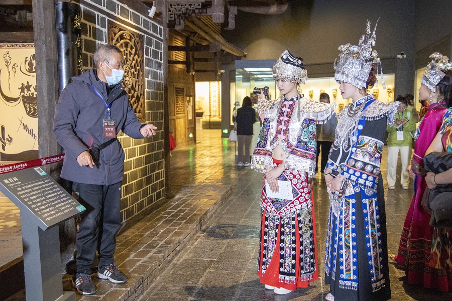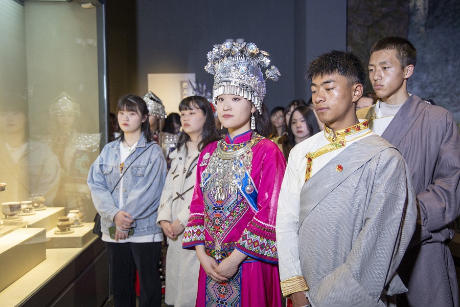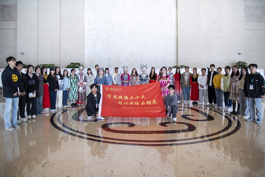 本网讯(通讯员 赵志强 王欣连/文 记者 胡蝶/图)2023年3月30日,36365线路检测登录入口学生工作处、经济与管理学院大学生心连心互助社、非物质文化遗产研习学社在恩施州博物馆联合举行以“学思践悟二十大 同心共绘石榴花”为主题的民族团结教育系列特色活动。恩施州博物馆副馆长叶芳、主任谭薇,36365线路检测登录入口党委统战部常务副部长丁莉,学生工作部部长方云霞,民族事务工作办公室负责人谭俊妮、努尔比亚木以及32名少数民族学生参加本次活动。