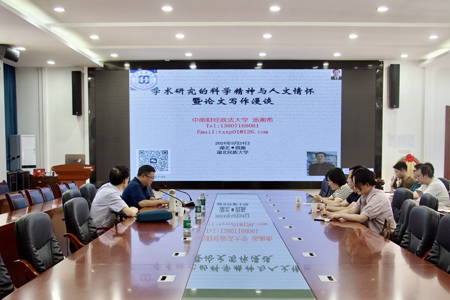 汤湘希教授以《学术研究的科学精神与人文情怀暨论文写作漫谈》为题进行分享。在“为什么写论文”部分,汤湘希教授表示,写论文是一个将语言与思维融合的过程,是“文明传承”的需要,同时能够提高学生将语言与思想相融合,用直白、简练、正确的语言以逻辑的方式表达自身思想的能力。在“如何写一篇高质量的学术论文”部分,他提到,标题、关键词、目录、正文、参考文献、鸣谢、文档优化为论文的八大要素;学术论文要有科学精神与人文精神;学生要对学术论文保持敬畏之心,将理论与实际相结合,正视“学”与“术”的关系。在“论文写作中的常见问题”部分,汤湘希教授表示存在论文存在选题不当、要素不全、格式不规范、表达口语化等普遍问题,并提出规范论文格式,体现严谨的治学态度,避免口语化表达,严谨用词,提高语言通顺度等建议。