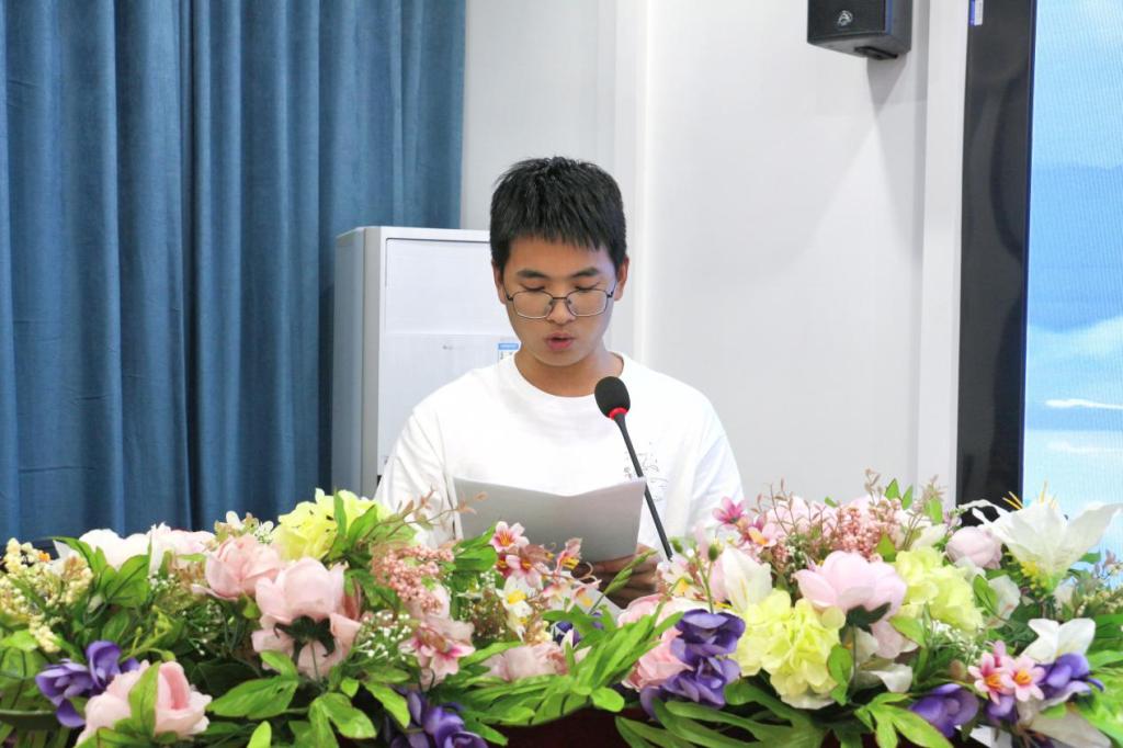 学生干部代表黄国轩发言。他表示,作为经济与管理学院的学生干部,在过去的一年里,经历了许多挑战和机遇,也取得了不少成绩和进步,学生干部的工作永无止境,仍需不断进取、追求卓越。同时,他希望在未来的工作中各成员能以创新为动力、以团结为基石,做到同心协力、携手共进,不断提升自身综合素质和工作能力。