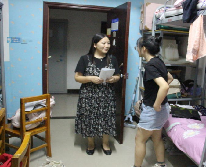 在走访中,陈霞书记与新生亲切交流,了解新生入学适应情况及诉求,对新生关心的问题给予耐心解答;提醒学生注意通风,做好个人及寝室卫生,遇到困难及时与班主任、辅导员沟通。同时,陈霞书记告知学生军训注意事项及入学教育安排,提醒学生做好防晒及预防中暑。