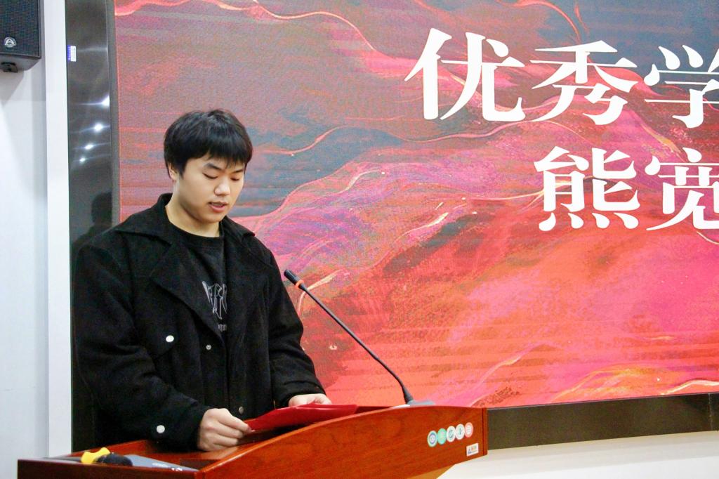随后,主持人宣布在实践创新竞赛中获奖学生名单,由冉瑞恩为获奖学生颁发荣誉证书。