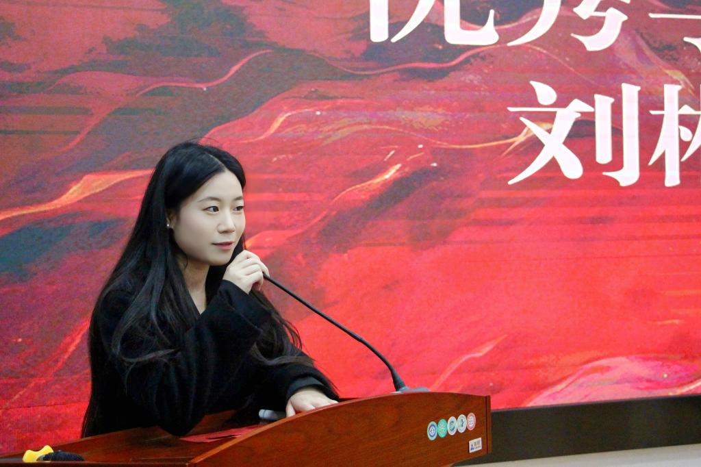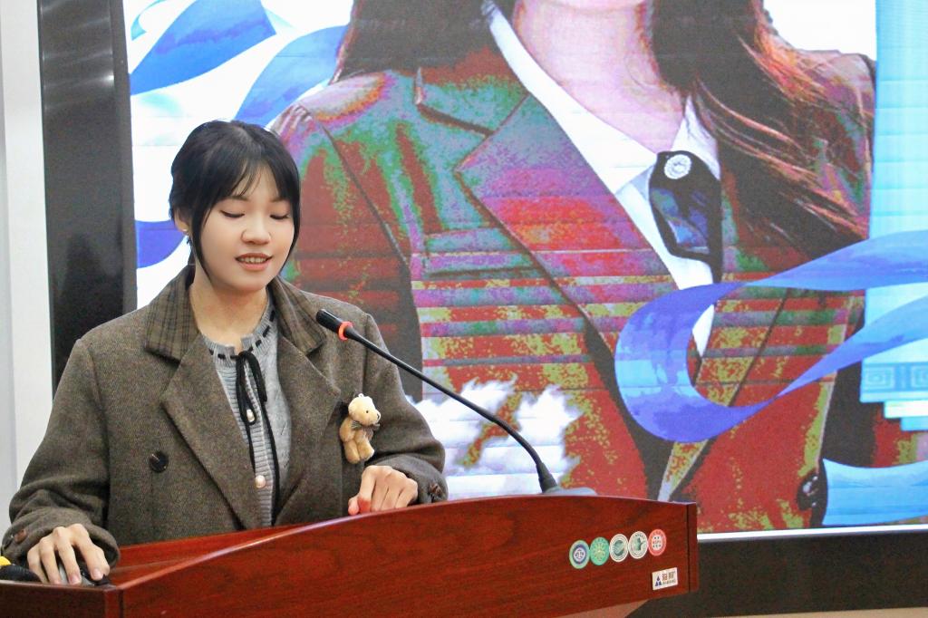 获奖学生代表余坤晓发言。她建议学生深入研习、反复操练,努力提高专业知识储备量,熟练掌握专业技能,将时间精力倾注于自身专长领域,从而在汇报时做到从容不迫、应对自如。她进一步提出,每位团队成员都应该秉持团结协作的理念,基于团队实情通盘考量、精心策划出适合团队的比赛策略,避免在关键时刻出现慌乱无序的状态。最后,她表示比赛经历相较于比赛结果更为珍贵,是提升自身综合素养的宝贵财富,并希望学生借助参与比赛的契机结交更多志同道合的伙伴,为校园生活增添别样色彩。