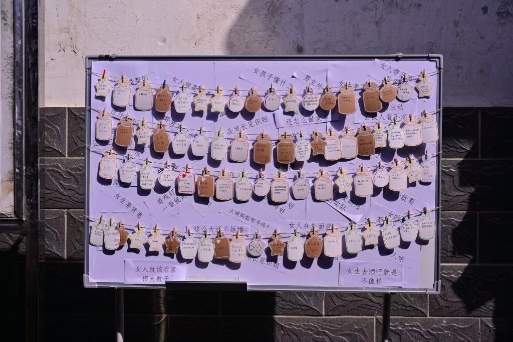 活动当天,春雨社区的活动现场摆满鲜花,吸引学生驻足参加。参与活动的学生早早来到现场,在工作人员处登记自己提前准备好的闲置物品,便前往展示区挑选心仪的鲜花。活动现场弥漫着分享的喜悦与互动的温情,学生所交换的每一件物品都化作传递爱心的纽带,承载着非凡意义。在交换的过程,学生在工作人员准备的卡片上写下近期的心情或者真挚的话语,让学生因文字结缘,拉近学生间距离。这些卡片被悬挂在展示墙上,成为一道独特的风景线,传递着学生内心的温暖情感。