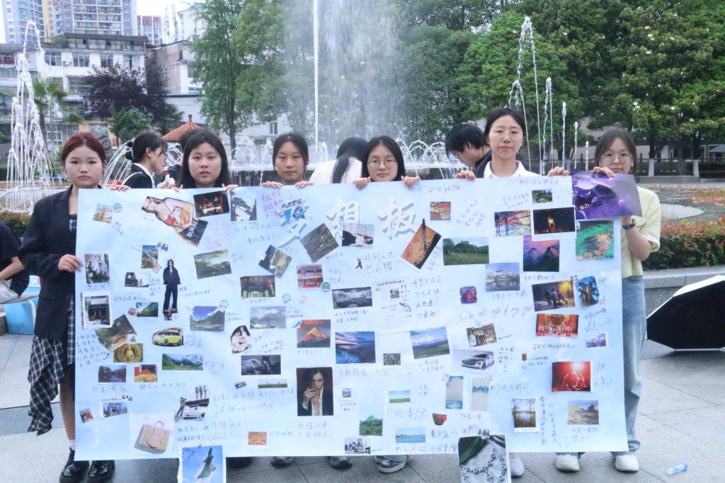 梦想板活动向参与者发放杂志、剪刀、便利贴等材料,让学生利用裁剪图片和文字书写的形式直观呈现自身梦想,从而激发学生进行自我探索,强化目标意识,凝聚追梦力量。