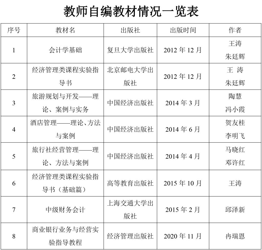 教师自编教材情况一览表