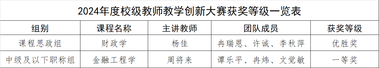 2024年度校级教师教学创新大赛获奖等级一览表