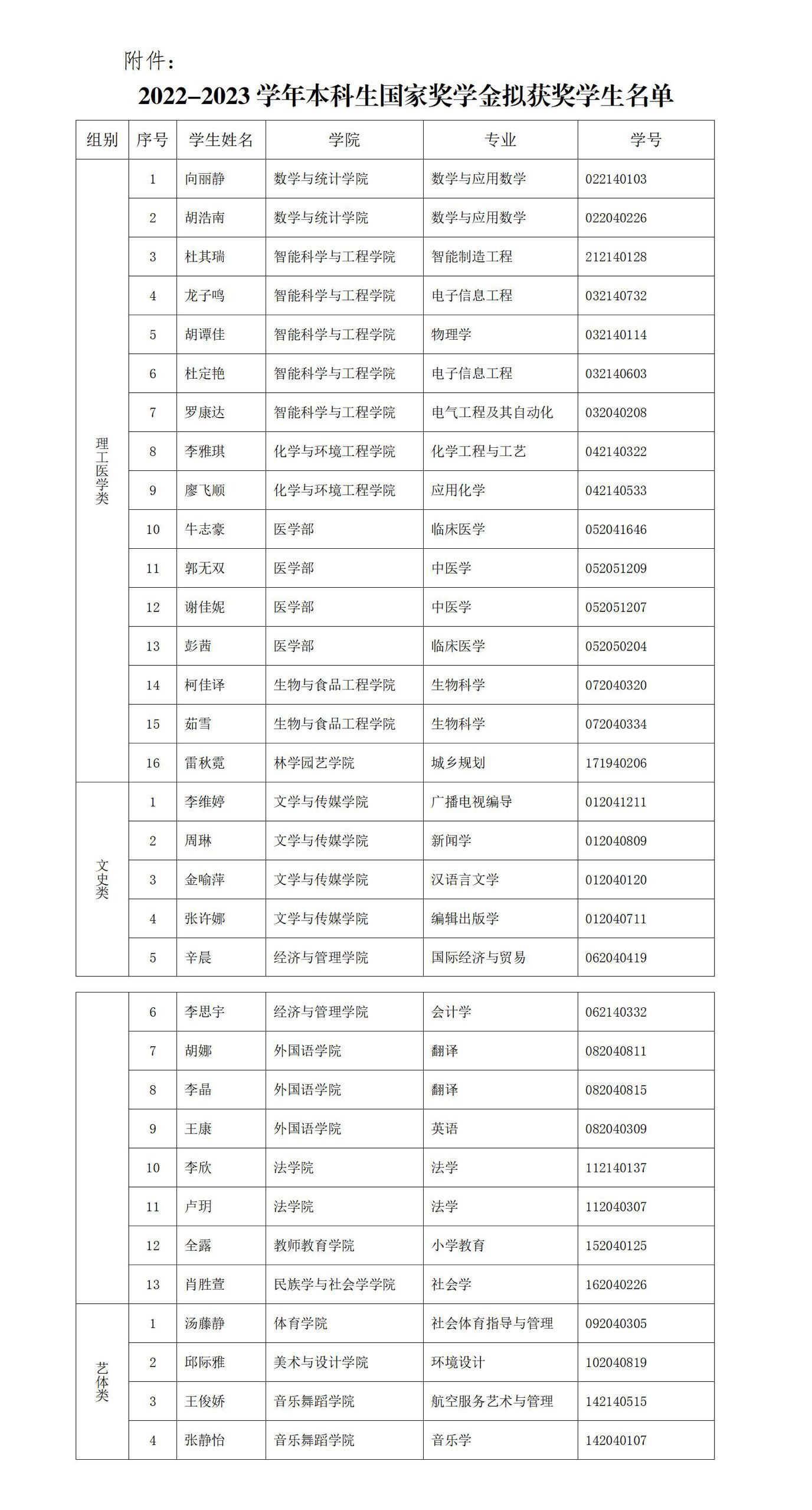 根据《湖北省学生资助管理中心关于做好2022-2023学年本专科生国家奖学金初评工作的通知》、《36365线路检测登录入口本科学生国家奖学金实施细则》(民大校办发〔2020〕67号)、《36365线路检测登录入口关于开展2022-2023学年国家奖学金评审暨国家奖学金答辩评审会的通知》等文件精神,经各学院(部)初评推荐、学生工作处组织答辩评审,经济与管理学院20级国际经济与贸易专业062040419辛晨、21级会计学专业062140332李思宇荣获2022-2023学年本科生国家奖学金。