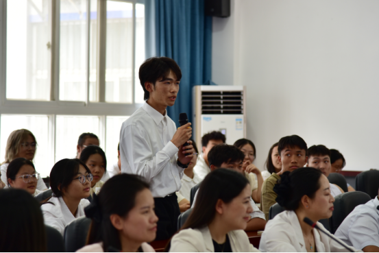 随后进入环节,同学们踊跃参与。乐建辰同学提出,不同地区的人说话有不同方言,其他地区的人无法理解,当土著人用自己的口音和使用不同口音的人交流时,是否像我们一样存在理解障碍。麦多明先生耐心解答道,在不同文化背景下确实可能存在交流障碍,但通过相互理解、学习和沟通,可以逐渐克服这些障碍。